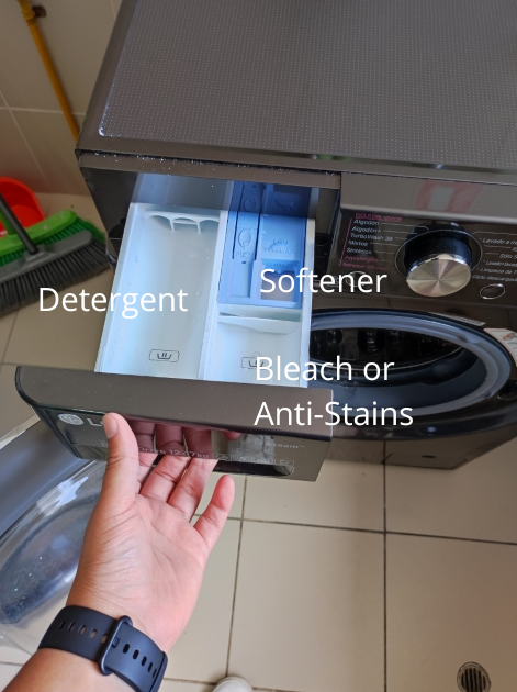 It has a Washing machine that also fulfills the Drying function (Washer/Dryer). It support 12 Kilos tops of Clothing for Washing and 7 kilos tops for Drying.